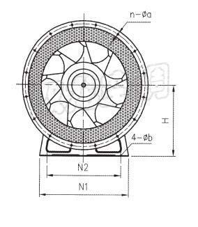 PYHL-14A型混流風機外形及安裝尺寸