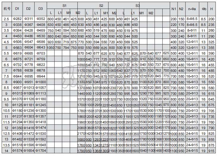 HL3-2A型混流風機外形及安裝尺寸
